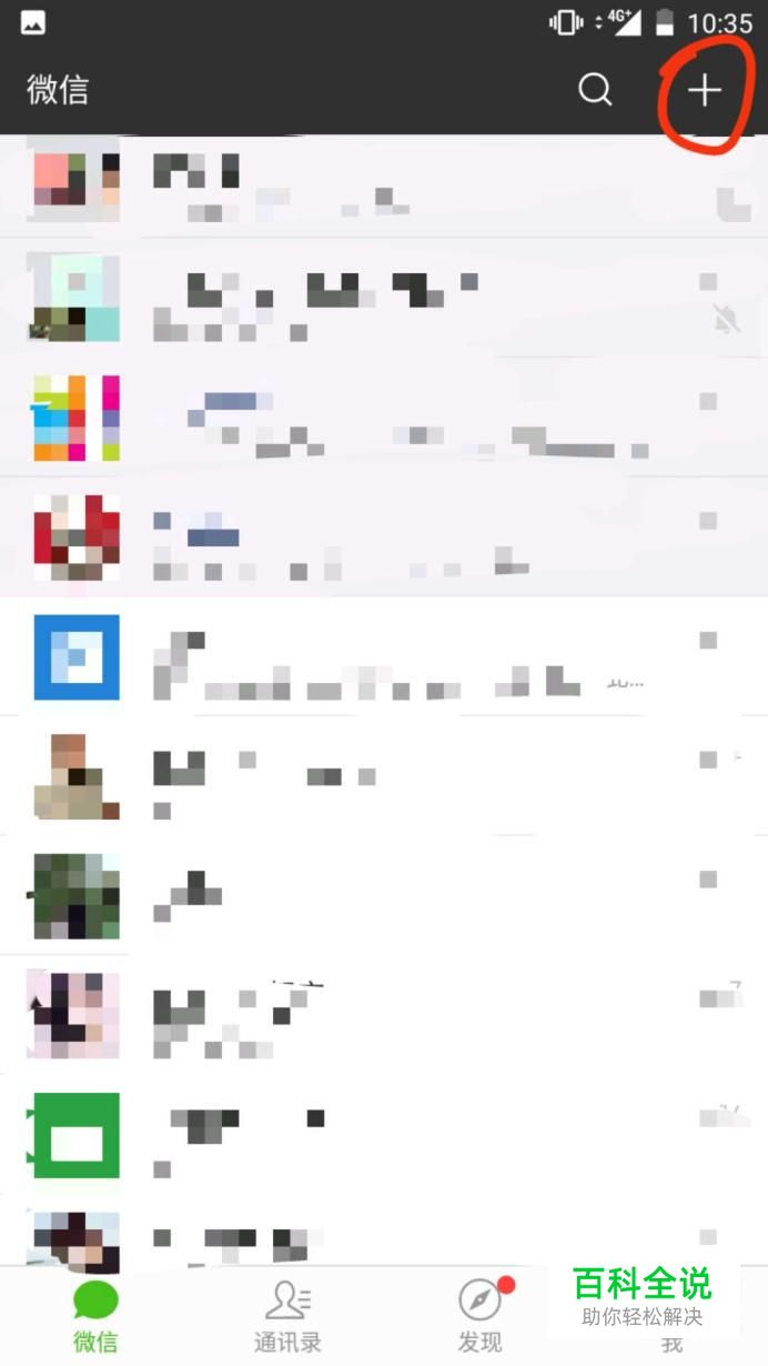 打开手机微信,点击右上角+