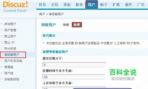 Discuz!7.2在原有用户人工审核的基础上新增了通过 ip 自动审核,进一步提高的站长审核的效率。 下面请看详细介绍: 一、通过IP自动审核用户 管理后台 => 全局 => 注册与访问 => 注册: 当用户处于本列表中的 IP 地址时,注册后无需审核。当您设置了注册需要审核时,在设置范围内的 IP 就拥有了不用审核即可注册的特殊权限。 每个 IP 一行,既可输入完整地址,也可只输入 IP 开头,例如 "192.168."(不含引号) 可匹配 192.168.0.0~192.168.255.255 范围内的所有地址,留空为不设置。 二、通过 IP 人工审核用户 管理后台 => 用户 => 审核新用户 => 清理: 详情可见参考资料。。。