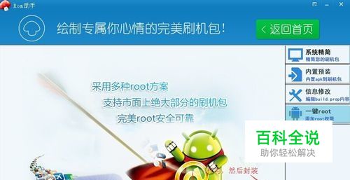 选择右边工具栏里“一键root”按钮,在“是否添加root相关文件”前打勾。之后点击右下角的“开始封装”。