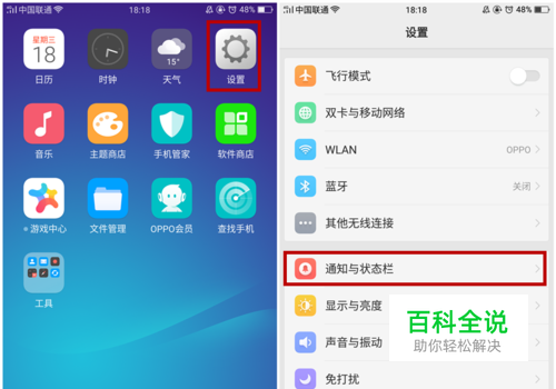 1、通过桌面的【设置】--点击【通知与状态栏】进入。