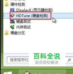 接着点击开始-硬件检测-HDTune(硬盘检测),打开hdtune硬盘检测工具,如下图所示: