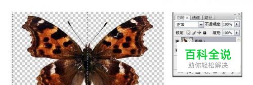 在PS中打开“蝴蝶.psd”,用“巨矩形选框工具”选择蝴蝶的半边,剪切并复制到一个新的图层。最后保存为PSD格式文件。
