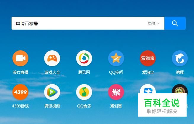 首先在搜狗浏览器中输入申请百家号并点击回车键,如下图所示。