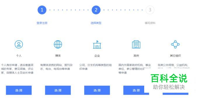 然后选择你要注册的类型,如下图所示。