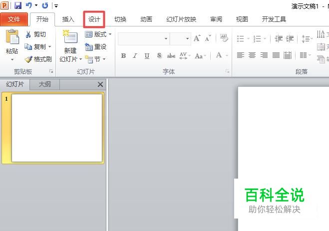 首先,我们打开我们电脑上面的ppt,然后点击设计;