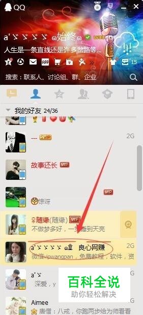 打开qq好友分组(我的好友、同学等),这是在非qq会员的情况下,排在非会员好友第一位