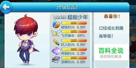 我们再来看一下超能少年的特殊人物技能:①可以穿越到超级奖励关卡②会四连跳。四连跳技能可以说是一大亮点,开启了四连跳新时代,以往难过的关卡,在拥有了四连跳后可以说变得非常好过了。这个技能目前来讲还是非常逆天的。