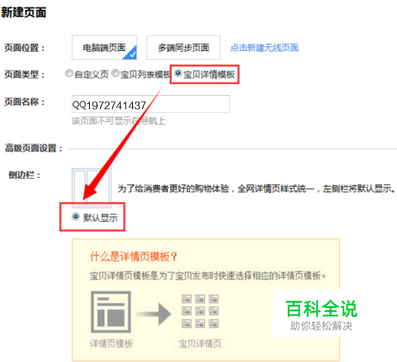 选择“电脑端页面”选择“宝贝详情页” 然后大家会发现小黑圆点是必须显示的:为了给消费者更好的购物体验,全网详情页样式统一,左侧栏将默认显示。 那么怎样将这个限制给突破掉呢? 请务必注意看页面名称上面的内容。 只有通过修改源代码的方式进行取消圆点的必选。