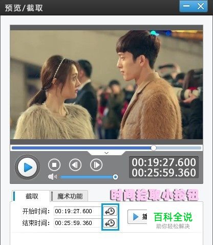 1、截取视频片段 鬼畜视频就是将一个视频片段不断循环,所以首先我们要先截取一段需要不断重复的视频片段,让视频导入爱剪辑,在“已添加片段”处,双击视频缩略图,在弹出的预览/截取对话框中,选取视频片段的开始时间和结束时间,通过上下方向键逐帧调整,左右方向键五秒微调,来精确踩点,然后点击时间拾取按钮,,即可截取视频片段。