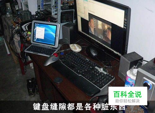 电脑旁边就是烟灰缸,经常一边使电脑一边吃东西,脏东西多的很。