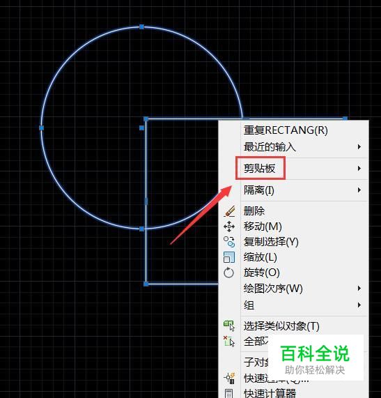 打开需要复制的图形之后选择需要复制的图形,然后单击鼠标右键在弹出的右键菜单里找到剪贴板选项,如图所示: