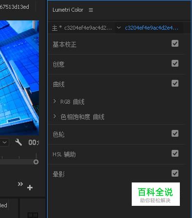 点开:lumetri color;下方展开相关的各个设置选项。要调色,我们从“曲线”这一项中设置。鼠标点一下:曲线,展开相关内容。