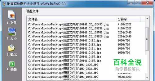 如下图,我这里导入的图片大小(分辨率)不一,但也相对比较大,我打算改小些。小提示:对于不修改的图片,可以按住“Ctrl”,用鼠标点击相应文件,选择单个或多个;如果是有连续的一些文件,则首先选中开始文件,接着按住“Shift”,再点中结束文件即可,一块文件就被选中了,最终点击“移除”。
