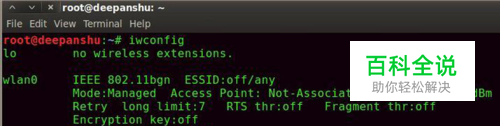 开BT5的终端,然后输入”iwconfig” 检查无线网卡 "iwconfig"类似 linux kali中的“ifconfig”