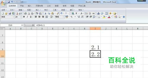 如果想递增小数点后的数字有如下方法:在下面单元格输入公式,本例中公式为I9+0.1。