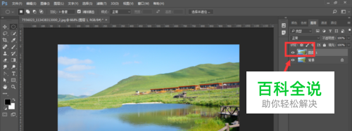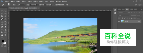 打开PS,将准备的一张平静的水面图片拖入到画布中
