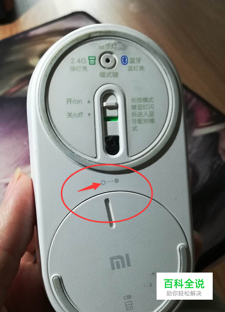 将鼠标翻过来底部朝上,看到下方的圆盘