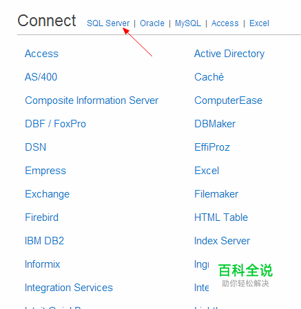 然后,在网站首页右侧Connect项中可以选择数据库类型,这里我选择SQL Server。