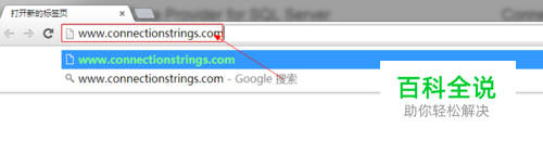 首先,打开浏览器,在输入框中输入www.connectionstrings.com。