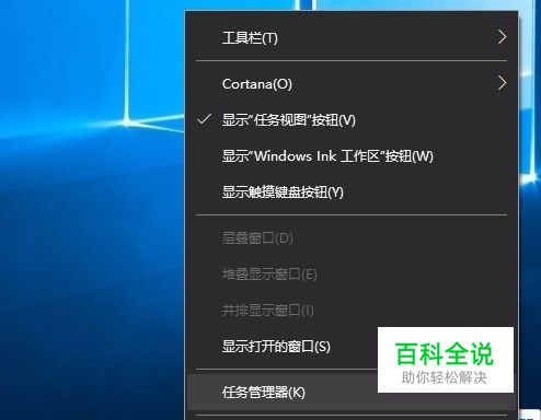在任务栏上点击鼠标右键,选择任务管理器。如图所示。