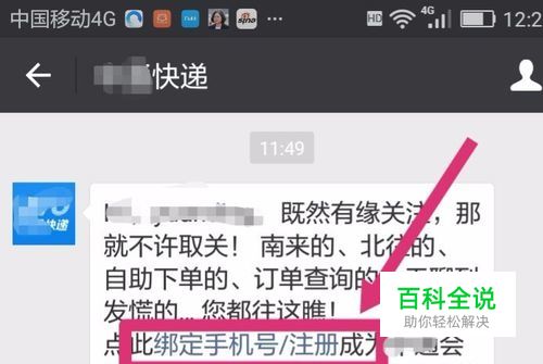 按快递公司要求,首先要扫描二维码,添加关注,这个步骤比较简单,大家都会做。关注之后,点击绑定手机号,注册,为以后寄送东西提供方便。
