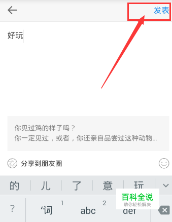 看到分享的按钮之后,接下来我们点击分享按钮,点击之后出现一个新的界面,即需要我们分享内容的发布,我们点击发表。