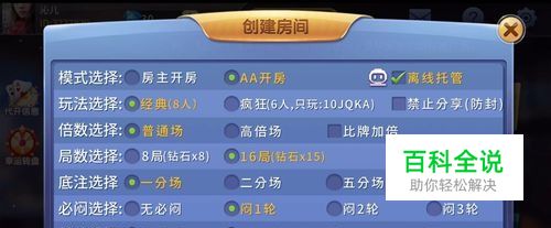 然后点击创建房间,根据所需的玩法创建房间,然后点击确认。常见的模式支持:模式选择、玩法选择、倍数选择、局数选择、底注选择、闭门选择等功能。