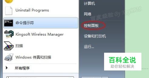 点击左下角“开始”菜单,选择“控制面板”: