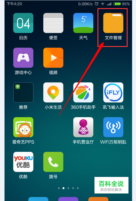 打开手机点击【文件管理】图标,进入文件管理器,如图所示