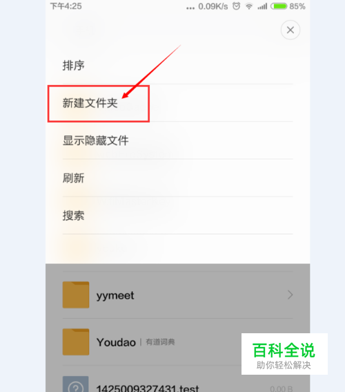 进入文件管理器后点击选项,然后选择【新建文件夹】,如图所示,小编新建了一个名为“xiaoxiao”的文件夹