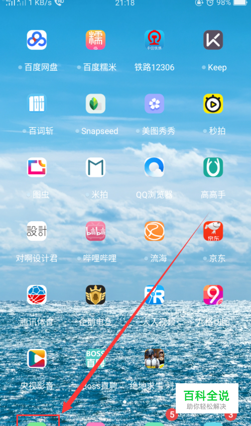 首先点击桌面左下角的【拨号】图标,如下图所示。