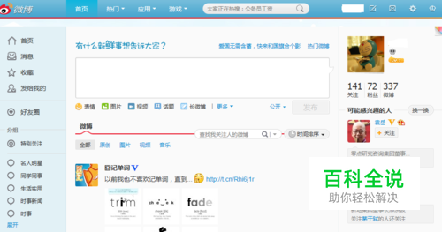 第一步:搜索“新浪微博”,选择官网进入首页,输入账号,密码等登录到个人新浪微博首页。