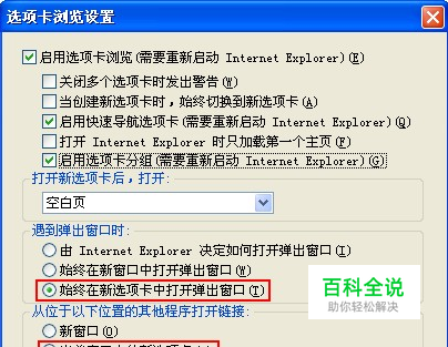 在“遇到弹出窗口时”选择“始终在新选项卡中打开弹出窗口”,后“从位于以下未知的其 他程序打开链接”选择“当前窗口的新选项卡”,点击|“确定”即可。