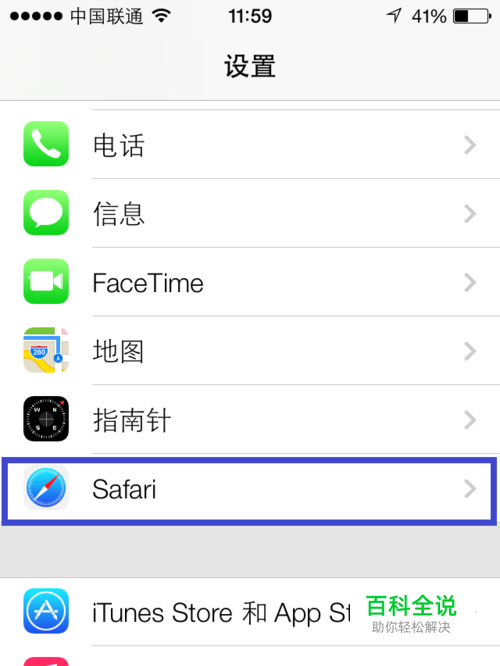 在设置列表中找到 “Safari”选项,点击进入,如图所示