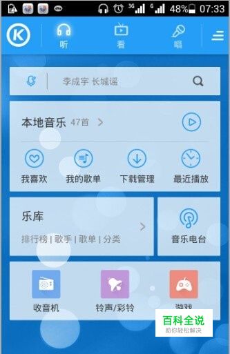 我们使用手机版酷狗音乐听歌的时候,可以在线试听一些歌曲,这些歌曲在试听的时候是可以进行音质的选择的,如何更改在线试听音质呢?下面小编和你一起演示一下。