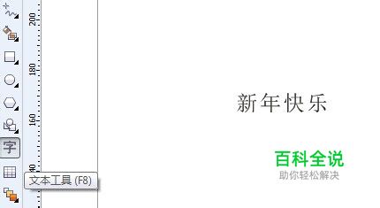 打开cdr,用文字工具写下你想做的字。 这里,小编写的“新年快乐”! 选择自己喜欢的字体,把要些的字改成想要的字体。