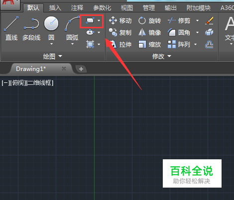 绘制好门框之后,我们再在绘图里找到直线命令,如图所示: