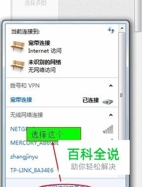 打开控制面板,选择网络和Internet下面的“查看网络状态和任务”或者点电脑任务栏下面的小电脑图标,打开网络和共享中心,如图