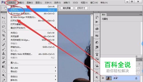 打开Photoshop软件,选择 文件菜单中的 打开命令,打开一张人物图片。
