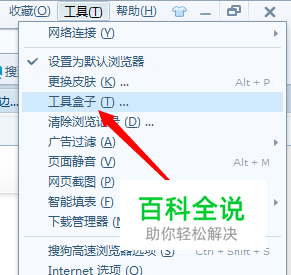 打开搜狗浏览器,点击“工具”->“工具盒子”项。