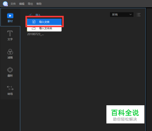 首先我们选择上方的导入,然后导入自己的视频素材;参考下图。