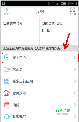 登录手机银行,点击右下角 “我的”,再点击 安全中心进入。