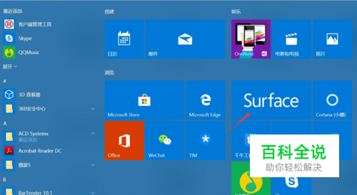 SURFACE PRO 开机之后,左下角菜单, SURFACE 点开