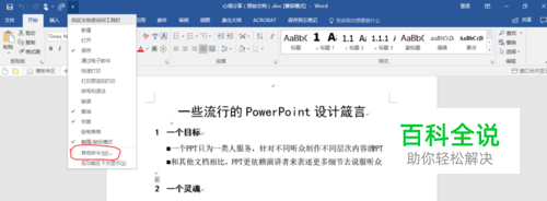 找到选中发送到Microsoft PowerPoint的命令,点击添加到右边的工具栏中。确定保存,如图