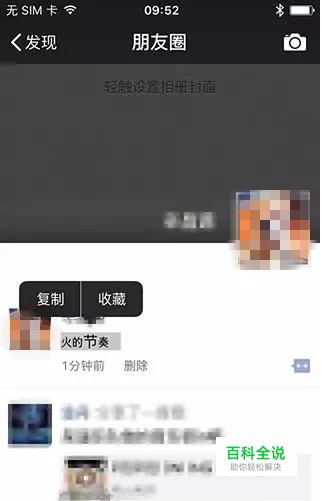 如果自己的朋友圈已经有小伙伴发出这种字体忽大忽小的消息,长按该消息,点击“复制”。