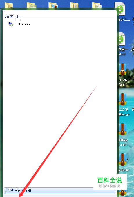 在弹出的搜索框里输入mstsc,可以看到有个程序被搜索出来了。