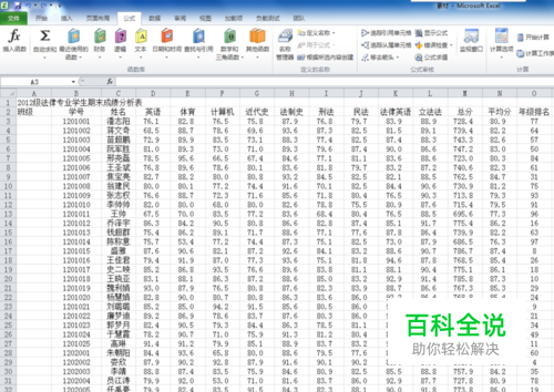 在“2012级法律”工作表中,利用公式、根据学生的学号、将其班级的名称填入“班级”列,规则为:学号的第三位为专业代码、第四位代表班级序号,即01为“法律一班”,02为“法律二班”,03为“法律三班”,04为“法律四班”。