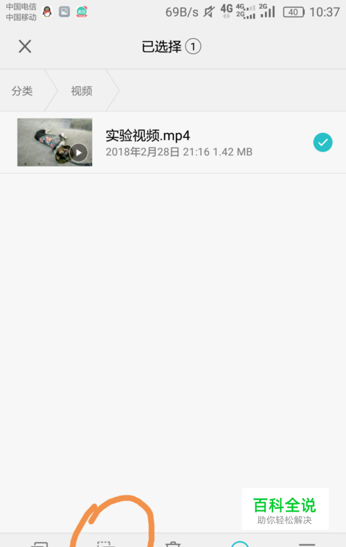 然后我们要选中我们的这个举例视频,点击下方的移动选项