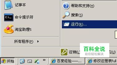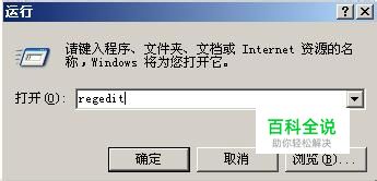 打开“开始”->“运行”,输入regedit再点“确定”。