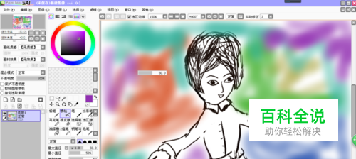 调整画布显示比例100%,便于使用,点选颜色,每个颜色会有不同程度的颜色,选择笔形,笔形非常全,各种效果,毛笔、水彩、钢笔等数十种。